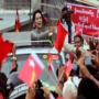 11月1日,上个星期天,距离举世瞩目的缅甸大选还有7天。仰光东北部的大金塔附近,昂山素季的支持者聚集在一起,成千上百的人散落在各个街道,路面上水泄不通,他们挥舞着孔雀标志的棋子,高唱全国民主联盟的竞选歌曲。